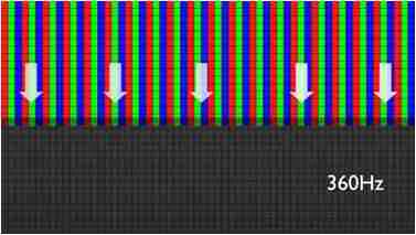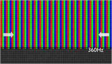 传统液晶驱动是从左到右单向进行,,,在画面更新速度愈来越愈快的情况下,,,位于驱动线路末端的右下角区域,,画素的闸极来不及在短时间内获得足够电压,,无法显示出正确的颜色资讯。。 |