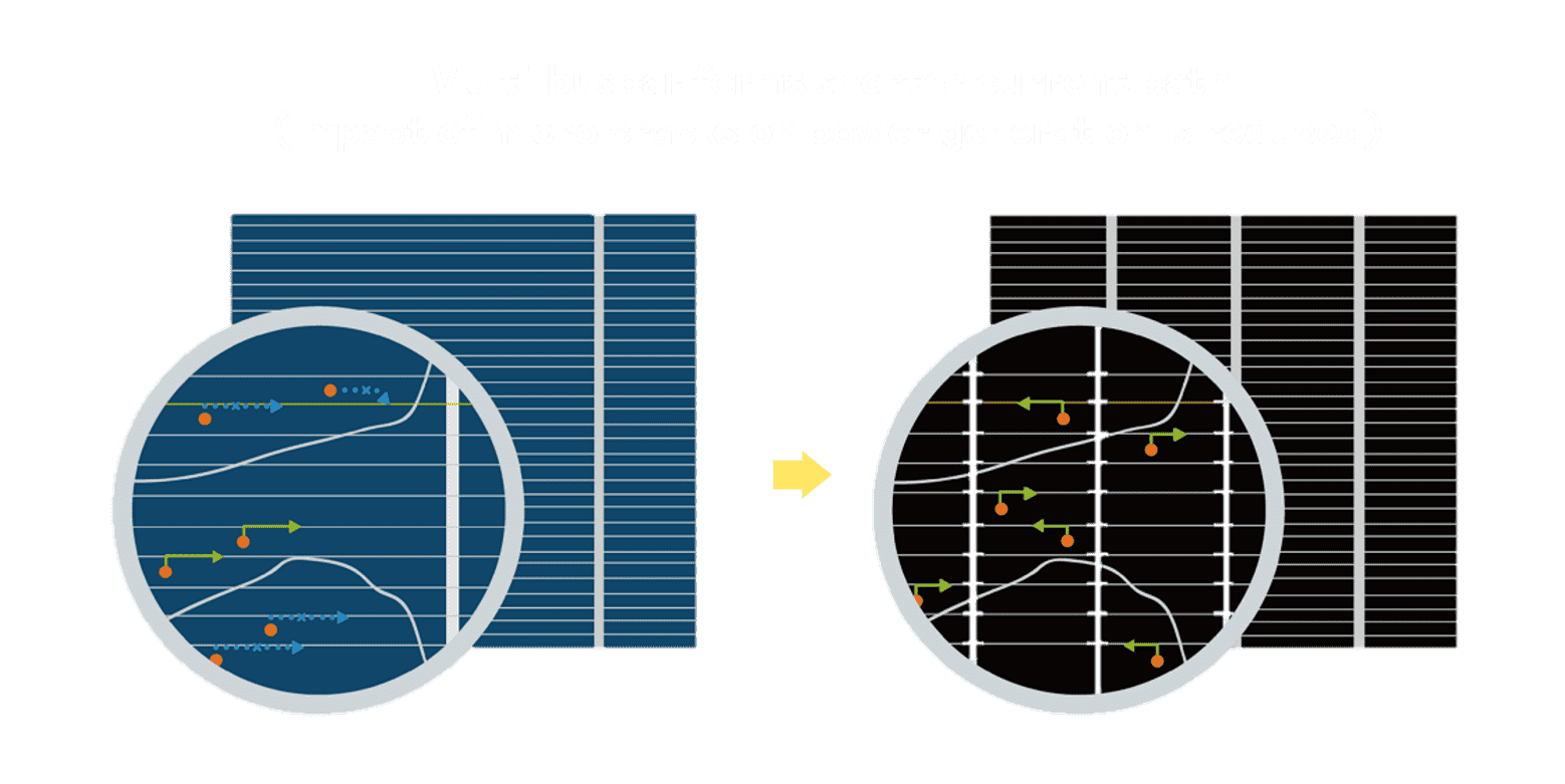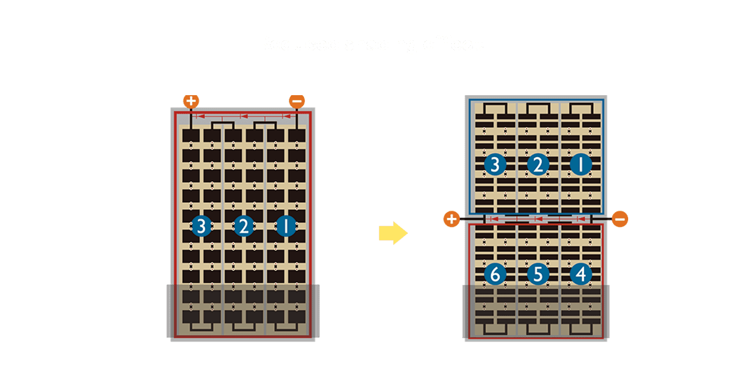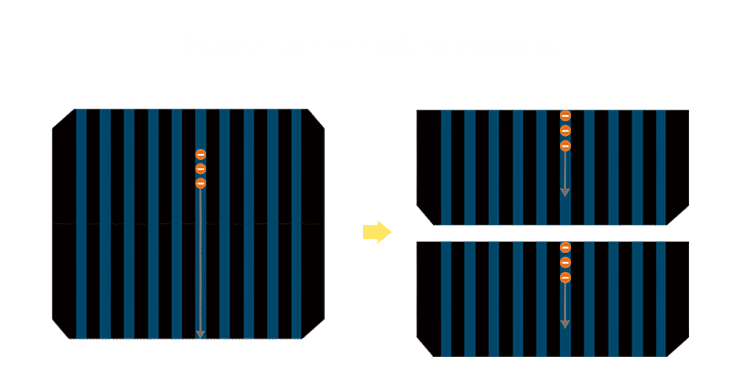 - 结合半切电池,,降低遮阴影响、、、、提升模组抗隐裂能力、、、并减少电阻损耗,,进一步提升模组发电效能。。。。